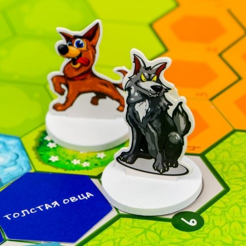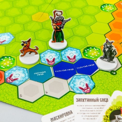 Итак, у каждого из вас будет фишка волка, которого нужно передвигать по игровому полю. Зачем? Чтобы хватать беззащитных овечек и тащить назад в своё логово.