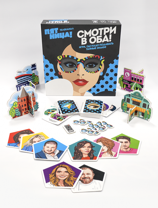 «Смотри в оба» — это веселая и быстрая игра для компании 4-8 человек. Вы — шпион. Вам нужно передать послание своей цели и самому стать целью, чтобы принять послание от другого секретного агента. Договариваться нужно взглядами и подмигиваниями, чтобы вашу операцию не сорвали соперники. Впрочем, вы можете первым их рассекретить.