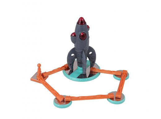Положите ракету, стартовую площадку, большие и маленькие конденсаторы, молниеотводы и провода рядом с основой платформы (перед первой игрой снимите ярлычок с ракеты).