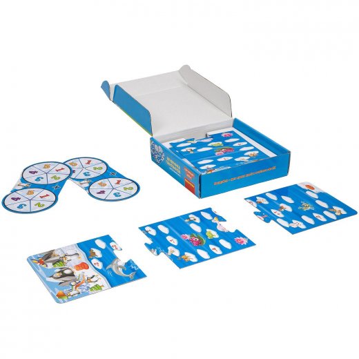 Помогите пингвинам добраться до друзей в настольной обучающей игре "Вечеринка пингвинов". Крутите барабан и перемещайтесь на указанное количество шагов. Если на льдине указаны или игрок дополнительно перемещается на указанное значение. Если фишка остановилась на клетке, с изображением животного, то игрокам предстоит имитировать его звуки или движения.