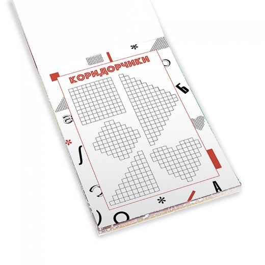 6 самых популярных игр (Змейки, Быки и коровы, Коридорчики, Ладошки, Типография, Футбол) не оставят равнодушными ни детей, ни взрослых. Блокнот содержит 12 листов на каждую игру. Размер блокнота 150х210х10 мм.