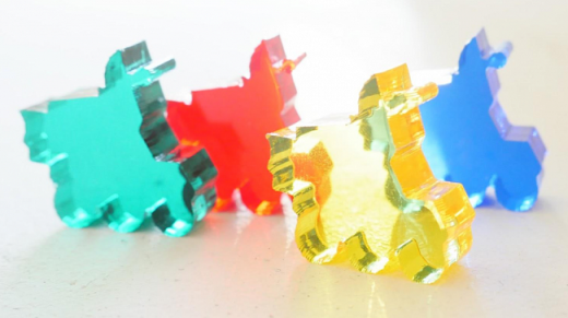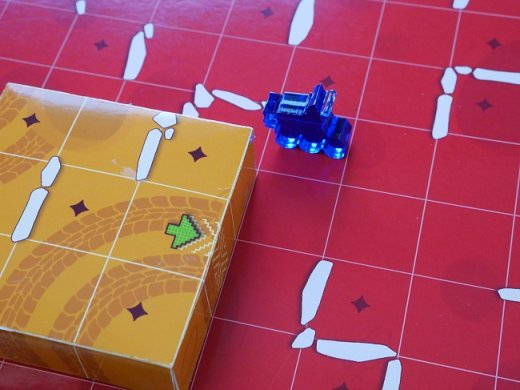 4. На жетоны, в соответствии с их цветом, поместите 4 вездехода. Вездеходы должны быть направлены носовой частью в любую сторону, но не "в стену".