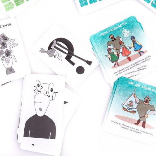Вам предстоит находить на столе пары карт с одинаковым смыслом, но различными иллюстрациями, изображающими фразеологизмы в прямом и переносном смысле. В отличие от классических игр на память, с механикой подбора парных карт в нашей игре есть принципиальные отличия.
