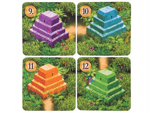• Если искатель сокровищ соединён непрерывной тропинкой с храмом своего цвета, он приносит игроку 3 победных очка. Для каждого искателя считается только кратчайший путь к храму, каждую карту с тропинкой можно использовать только один раз.
