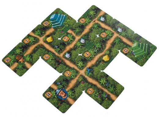 Выкладывая карты из руки, каждый игрок создаёт свой остров и соединяет тропинками своих искателей сокровищ с храмами соответствующего цвета. По пути к своему храму искатели будут собирать алмазы и золотые самородки, которые в конце игры принесут игрокам дополнительные очки.