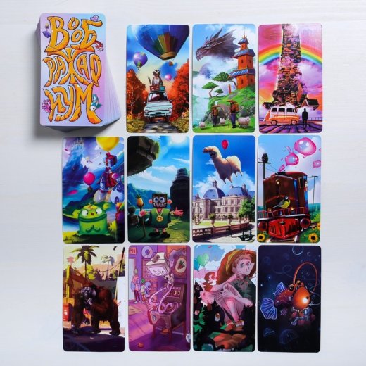 "Воображариум" подарит отличный повод собраться вместе и интересно провести время. Вас ждёт 98 невероятных изображений, вызывающих полёт фантазии. Придумывайте ассоциации и пытайтесь понять, что загадали другие участники. А специальные поля сделают игру ещё увлекательнее!
