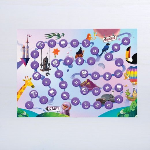 3. Разложите игровое поле. Пусть каждый участник возьмет себе фишку любимого цвета и поставит ее на клетку "Старт".