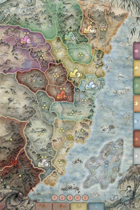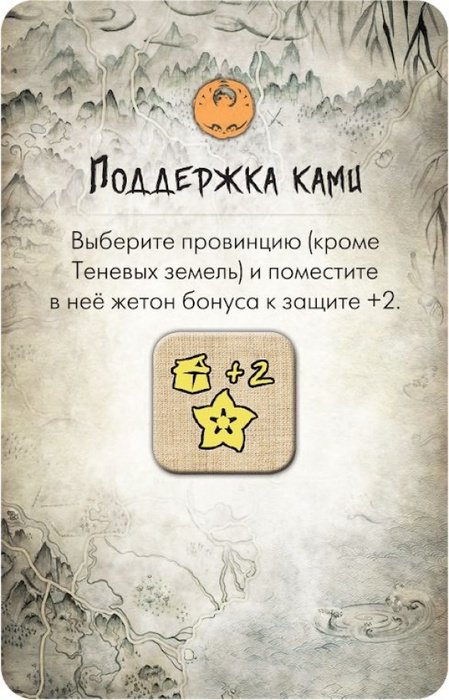 10. Начиная с первого игрока и далее по часовой стрелке, каждый игрок берёт один из своих начальных жетонов контроля (которые игроки отложили в шаге 7 подготовки) и помещает его лицевой стороной вниз в центр любой провинции, где ещё нет жетонов контроля. Вы можете помещать жетоны контроля в столичных провинциях кланов, если там нет других жетонов контроля, и даже в Теневые земли.