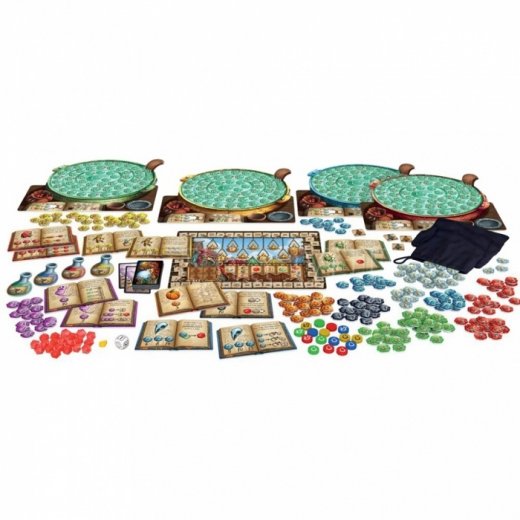 И только потом вы переходите к фазе зельеварения. Игроки достают из мешка жетоны ингредиентов и кладут их в свой котёл согласно математическому расчёту до тех пор, пока все не спасуют, или у них не закончатся жетоны. Будьте осторожны: если выложить белые жетоны на сумму, превышающую семь очков, ваш котёл взорвётся, и тогда вам точно не видать самого дорогого зелья.
