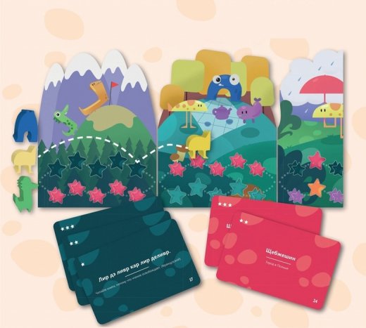 А еще в "Языколомище" появились карты Приключений. В них собраны забавные поручения, которые нужно выполнять делающему ход игроку. Например, заменять одну букву в словах на другую, петь басом, или топать между слогами в ладоши. Выполнение задания с особыми условиями привнесет заметный колорит в игру.