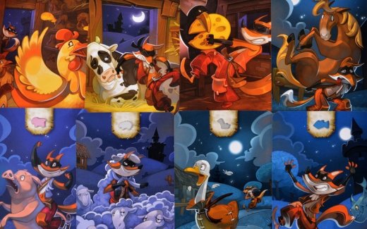 Хитрый лис хочет отдохнуть и развеяться и ненадолго покинуть свой замок. Ему нужно оставить кого-то вместо себя - одного из самых храбрых лисов в лесу. Чтобы доказать, что вы достойны этого, утащите добычу с соседней фермы, выполняя задания, которые знаменитый коварный лис придумал для вас. Первый, кто соберёт 10 жетонов вкусных яиц, выиграет и станет наместником замка.