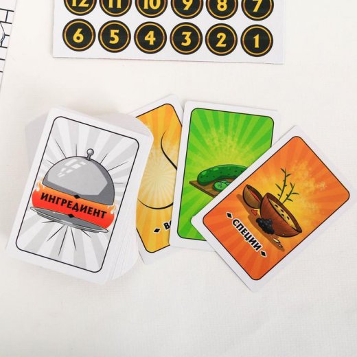Шеф-повар вытягивает карту заказов и громко зачитывает её содержание. Там написаны ингредиенты, которые нужно собрать для заказа. После этого шеф переворачивает песочные часы, и у поваров, включая шефа и заготовщика, есть 30 секунд на то, чтобы приготовить блюдо из имеющихся на руках карт.