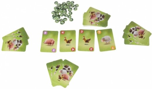 На начало игры каждый фермер получает остатки своего разномастного стада, а именно – три карты, среди которых могут встретиться свиньи, куры, овцы или корова. Каждый представитель звериного сообщества имеет свой номинал от 1 до 10. Затем перед игроками разворачивается та самая поляна, на которой одновременно пасутся целых четыре животных (т.е., четыре карты), любое из которых может отправиться в хозяйство одного из игроков при удачном стечении обстоятельств.