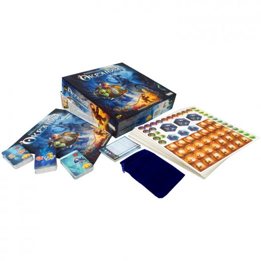 "Океания" – это великолепная, яркая и захватывающая приключенческая игра для детей и взрослых! Став капитанами своих подводных лодок, от 2 до 5 игроков отправятся на поиски приключений в прекрасный подводный мир Океании! Заводите свою любимую субмарину, ныряйте на ней в бездонные пучины океана и постарайтесь открыть как можно больше интересного! Вас ждут сокровища, подводные жители, коралловые рифы и даже Кракены! Прокладывайте свой маршрут с умом, а если уверены в себе, то потратьте топливо, чтобы обогнать конкурентов и исследовать побольше! Отправляйте водолазов на поиски сокровищ, посещайте подводные базы и улучшайте свою лодку!