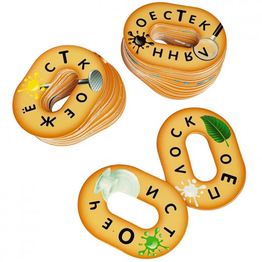 Перед началом каждой игры внимательно рассмотрите все изображения на игровых карточках. Каждая игровая карточка имеет форму баранки и прочитать прилагательное на ней - непростая задача. Кто первый прочтёт и придумает к нему слово, тот и забирает карточку. Игра очень весёлая, различные варианты делают её интересной и для малышей, и для ребят постарше, и даже для взрослых.