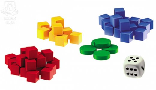 В состав настольной игры Эволюция. Новый мир входят: 96 карт эволюции; 20 карт ареалов; кубик; деревянные фишки; 4 памятки игрока и 2 памятки по свойствам; фигурка первого игрока; правила игры и справочник.