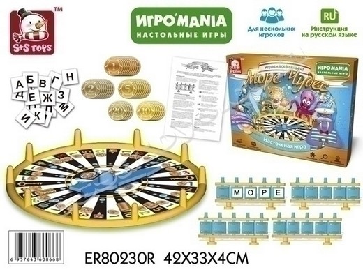 "Море Чудес" это замечательная, компанейская настольная игра. Она понравится всем, кто любит общение, интеллектуальные игры и телевизионную игру "Поле чудес", ибо "Море чудес" очень сильно на нее похожа. Здесь игрокам нужно будет крутить барабан и отгадывать слова на удобном табло с разворачивающимися буквами. Игра развивает ассоциативное мышление, настойчивость, память, интеллектуальную сферу, интерес (через проявление своих знаний и сообразительности) внимательность, кругозор, словарный запас, аналитическое и синтетическое мышление, коммуникативные навыки, эмоциональную сферу, дает новые знания. Играйте, развиваясь с новой замечательной настольной игрой "Море чудес"!