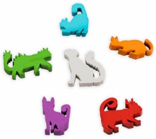 - 40 уникальных жетонов кошек (по 8 каждого из цветов)