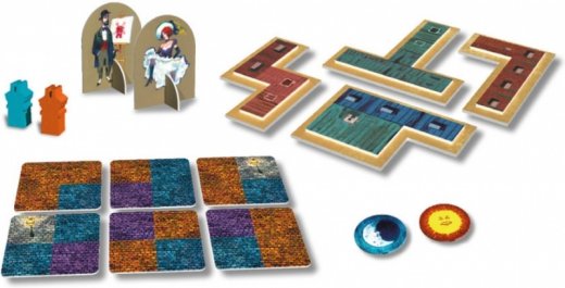 Помимо размещения тайлов мостовой, на первом этапе игрокам доступно ещё одно действие – взять из общего запаса тайл здания. Здания выполнены в форме фигур полимино.