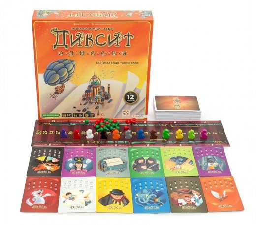 Вечеринка с ассоциациями. С игрой Диксит Одиссея максимальное число участников возрастает с 6 до 12. В игре также предусмотрены правила для троих участников и командного Диксита, когда игроки разбиваются на пары.