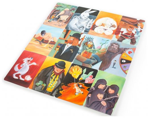 84 новых мира. Новый Диксит просто невозможно представить без новых карточек. Благодаря стараниям двух талантливых французских художников, игроков ожидает 84 новых сюрреалистических картинки. Карты в настольной игре Диксит Одиссея были нарисованы Пьеро, а раскрашены Мари Кардо.