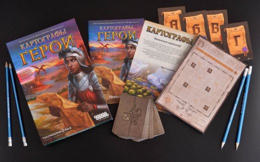 "Картографы: Герои" – семейная настольная игра, в которой можно отправиться навстречу приключениям хоть в одиночку, хоть огромной компанией! Целый год (условный, конечно же) игрокам предстоит путешествовать по королевским землям, старательно зарисовывать изученные окрестности в картографические планшеты, получать за свои старания золотые монеты из казны, а также почётные звёзды, в коллекционировании которых и заключается главная задача.