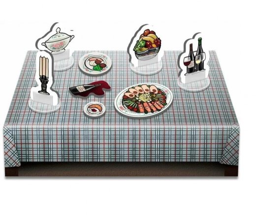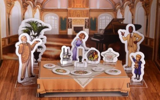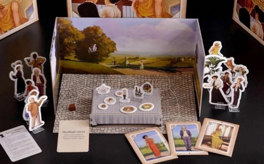 Игроки получают по 14 фигурок гостей и собирают сцену для фотографии из ширмы, планшета пола и стола, на который для украшения выставляются жетоны блюд. Потом они по очереди вскрывают конверты, в которых скрыты предпочтения гостей, выставляют фигурки в игровую зону, кладут карты предпочтений обратно и обменивают конверты по правилам, указанным на карте обмена этого раунда. Вы также сможете тайно положить в конверт одного из гостей карту особого гостя, чтобы потом те игроки, на чьей фотографии он окажется, получили дополнительные победные очки. А ещё в игре есть режим аукциона, который усложняет процесс обмена информацией о предпочтениях. В этом режиме вы сможете торговаться за информацию, используя жетоны блюд в качестве валюты.
