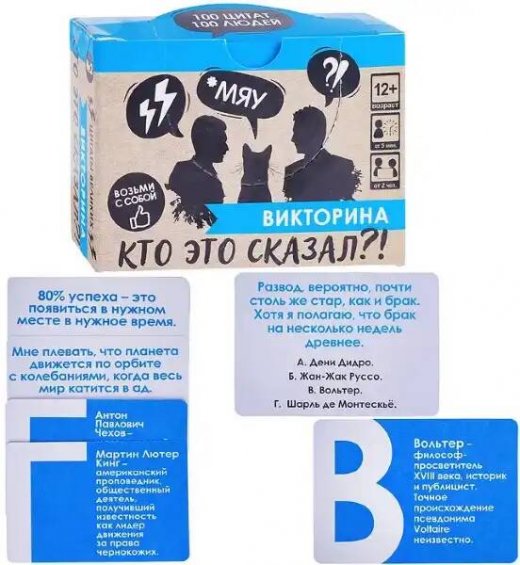 Купить Викторину Кто это сказал? в Новосибирске Вы можете в магазине настольных и развивающих игр "Игры Почемучек"