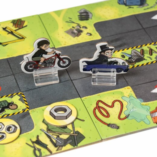 Теперь стоит осмотреться и учесть особенности гоночного трека со всеми его препятствиями, крутыми поворотами и дорожной разметкой. Трасса составляется из нескольких тайлов в начале каждой партии случайным образом. Некоторые клетки помогают гонщикам, а другие наносят вред, если игроки останавливаются на них. Занимайте самые выгодные участки, получайте преимущество и сталкивайте соперников лбами, проскакивая прямо перед капотом лидера.