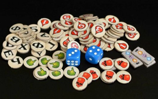 Комплектация: 111 карт; 92 жетона; 6 фишек героев с подставками; 2 кубика; Правила игры.