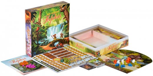 Подготовьтесь к игре: из случайных карт колоды создайте полянку, разложите ресурсы по отдельным ящичкам, а кубики по ячейкам, возьмите планшет и набор фишек. Самый младший участник игры получает жетон солнца и становится первым игроком. Кидайте кубики и разыгрывайте карты с особыми свойствами. Возьмите одну из ваших фишек с животными и переместите на выбранную полянку для сбора ресурсов. За один раунд каждый игрок может совершить три хода, а после вернуть все фишки на свой планшет. Раунд заканчивается передачей жетона солнца следующему игроку, меняется их очерёдность и положение жетона луны. Победителем становится тот игрок, который получил максимальное количество победных очков за сбор ресурсов. Полюбившаяся сказочная игра в новом варианте, подходящем для всех возрастов, а значит можно собраться вечерком всей семьёй и погрузиться в удивительный мир Эверделла. Также в состав игры входит бонусное расширение "Детский сад" с дополнительными картами и жетонами.Комплектация: