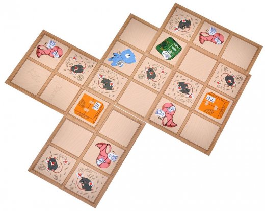 В настольной игре "Почта" игроки соревнуются в умении быстро и правильно группировать одинаковые посылки на стеллажах. Ваша задача – перемещать своего помощника по полкам и размещать посылки на свободных местах, объединяя их в группы и закрепляя специальными лентами. Только так ваши посылки благополучно дойдут до адресата, а вы заработаете заветные победные очки!