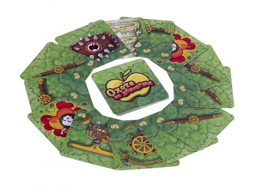 В состав настольной игры входят: 121 карточка; 88 карточек механизмов и действий (4 набора разных цветов по 22 карточки); 8 карточек ветви (с номерами от 1 до 8); 8 карточек цветения; 8 карточек корзин; 8 карточек охотников за яблоками; 1 карточка созревания; 20 фишек яблок; 1 фишка колпака гнома; правила игры.