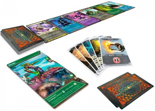 Если вы уже знакомы с механикой построения колоды, то у вас не возникнет никаких проблем в изучении Осколков — игра основана на базовых принципах декбилдинга. В свой ход вы берёте пять карт из личной колоды и запускаете свою карточную карусель. Разыгрываете карты и применяете их эффекты, покупаете новые с рынка, атакуете соперников, затем все сыгранные карты сбрасываете и добираете новые из колоды. И так по кругу, пока вы не победите всех конкурентов, опустив их здоровье до нуля — всё просто и понятно. Но такие именитые авторы не могли оставить нас без вкусностей — к ним и переходим.