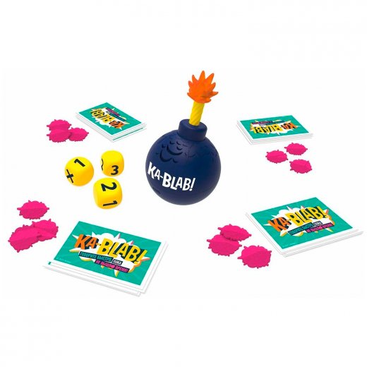 Вашу семью ждет безумное веселье с игрой Ka-Blab, которая превосходит все классические настольные игры! Бросок кубиков определяет, сколько предметов в определенной категории игрок должен назвать, но ему лучше поторопиться! Если прозвучит случайный таймер, ход закончится, и игрок должен будет передать свой жетон с очками. Побеждает последний игрок, у которого остается один или несколько жетонов очков.