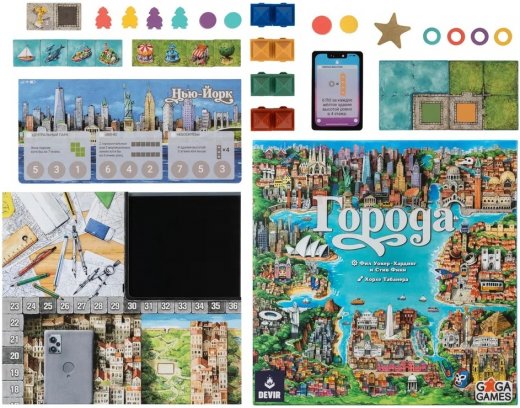 Города — семейная стратегия от авторов игр Медвежий Парк и Аббатство. Вам предстоит соревноваться в хитроумном комбинировании тайлов, чтобы разработать лучший проект по заказу городской администрации. Разные города со всего мира, парки, улицы, акватории… и объёмные домики, из которых можно построить целый высотный район!