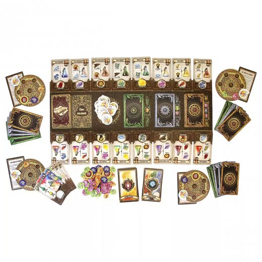 В "Школе волшебства" немного переработали дизайн и игровой процесс классического "Зельеварения", а также добавили несколько дополнительных плюшек. К примеру, теперь алхимический шкаф каждого игрока будет наполнен базовыми ингредиентами с самого начала игры, а на смену общему счётчику очков пришли индивидуальные счётчики-амулеты и очень красивые жетончики-кристаллы. Также игрокам стали доступны особо ценные жетоны магем, заменяющие ингредиенты эликсиров и зелий. Можно было бы рассказать ещё про новую систему зелий, заклятий и магических зверей, но лучше вам один раз сыграть, чем сто раз услышать. Откройте по-новому любимый мир "Зельеварения"!
