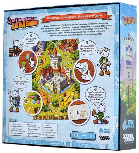 «Средневековая академия» – это карточная игра, в которой участникам предстоит стать студентами средневековой академии и, изучая различные науки, прокачивая свои боевые навыки и участвуя в рыцарских турнирах, стать великим героем. Рассчитана она на компанию от 1 до 5 человек возрастом старше 8 лет.