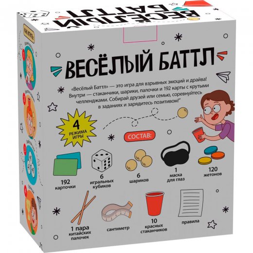 Проводя время за настольной игрой «Весёлый баттл» вы не только отдохнёте и зарядитесь позитивными эмоциями, но и дадите тренировку логике, навыкам коммуникативного общения и смекалке.