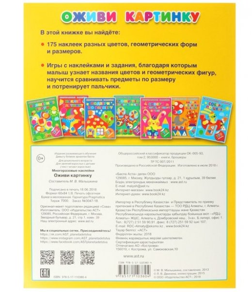 Многоразовые наклейки для малышей «Оживи картинку». Малышкина М. В. — отличный вариант для тех родителей, которые привыкли окружать своего малыша только лучшими и качественными вещами. За такой книжкой ваш ребёнок проведёт время с пользой и удовольствием, узнает много нового и интересного. В этой книжке ребенок сможет оживить картинки яркими наклейками и заодно выучить названия цветов радуги и геометрических форм.
