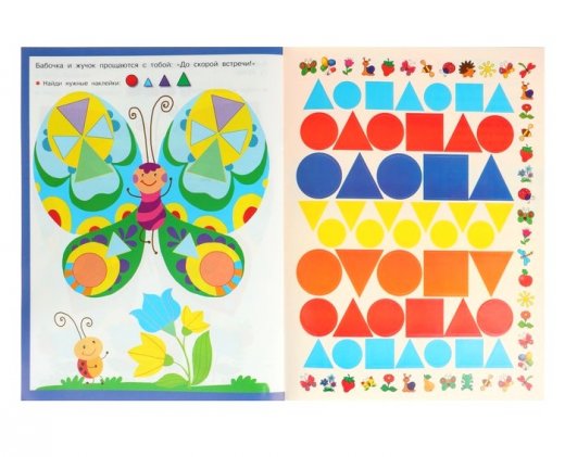 В этой книжке вы найдете 175 наклеек разных цветов, геометрических форм и размеров. Играя с наклейками, малыш сможет узнать названия цветов и геометрических фигур, научится сравнивать предметы по размеру и потренирует пальчики