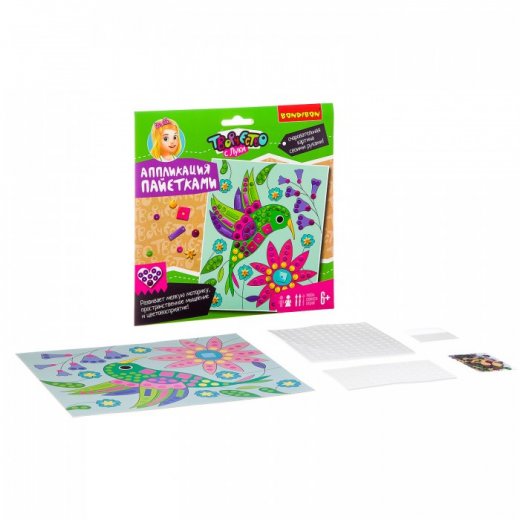 Купить Набор для творчества Bondibon Аппликация пайетками Колибри в Новосибирске Вы можете в магазине настольных и развивающих игр "Игры Почемучек"