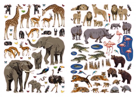 Оживи с помощью более 400 ярких наклеек развороты книги, насели их обезьянами и слонами, зебрами и пингвинами, экзотическими рыбами и домашними животными.