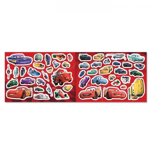 - В альбоме представлено 100 тематических наклеек с красочными изображениями героев мультфильма «Тачки».