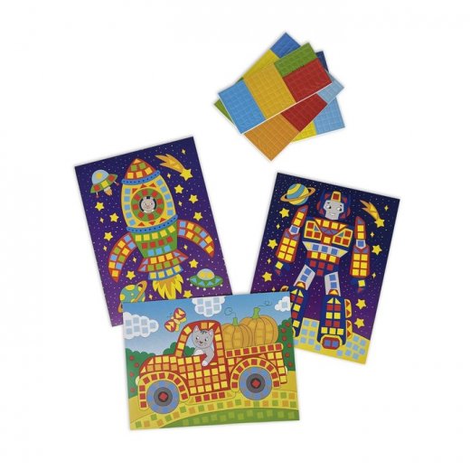 Разноцветная мозаика - это оригинальная и яркая объёмная аппликация для детей. В наборе для творчества есть все необходимое - 3 аппликации и 3 набора деталей на самоклеящейся основе. Детали мозаики выполнены в виде квадратиков и треугольников из мягкого пластика ЭВА с переливающимся декоративным покрытием. Размер одного элемента - 7х7 мм . Работать с аппликацией очень просто - на основе уже отмечены места для приклеивания деталей, необходимо просто подобрать подходящий по цвету элемент, снять его с общего блока и затем наклеить в нужное место. Сделанная своими руками картинка - отличный подарок для родных и близких. Подходит в качестве тематической поделки для детского сада. Является отличным средством для развития творческих и интеллектуальных способностей у ребёнка. В процессе работы у детей развивается мелкая моторика, расширяется представление о мире, формируется художественный вкус. Этот творческий набор специально подобран для мальчиков. В нём есть всё, что может быть им интересно: современный робот трансформер, разноцветная ракета и забавный грузовичок.
