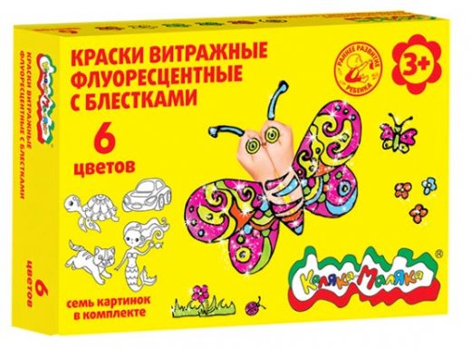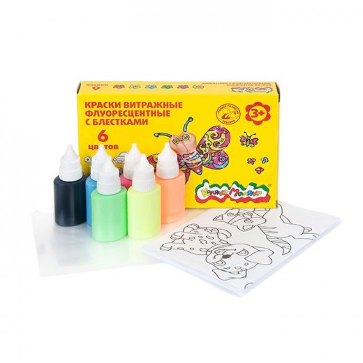 Купить Краски Витражные флуоресцентные с блестками Каляка-Маляка 6 цв в Новосибирске Вы можете в магазине развивающих и настольных игр "Игры Почемучек"