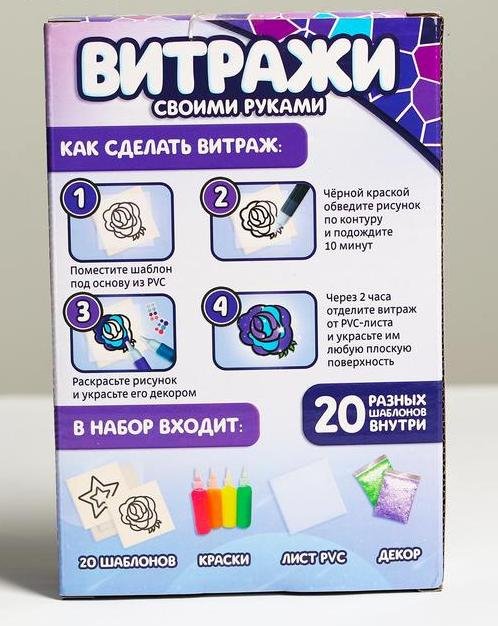 Состав набора: 20 шаблонов, краски, лист PVC, декор.