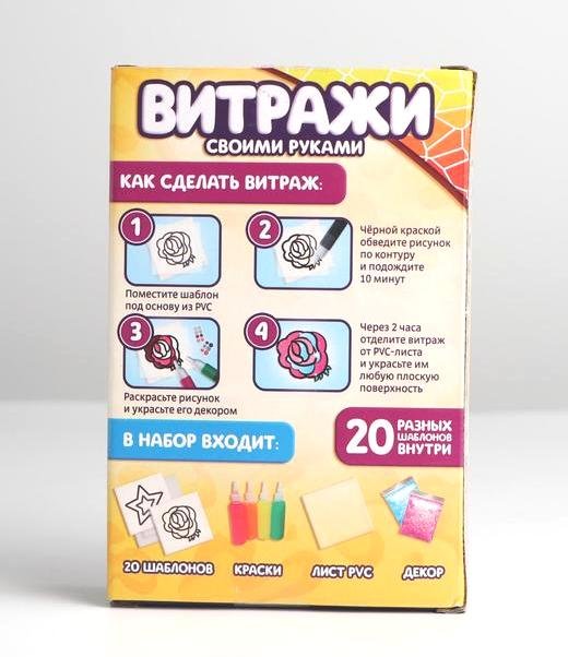 Состав набора: 20 шаблонов, краски, лист PVC, декор.