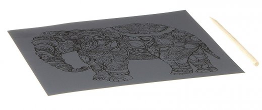 Состав набора: основа с металлическим эффектом (серебро) и нанесенным контуром, палочка-скребок (штихель).