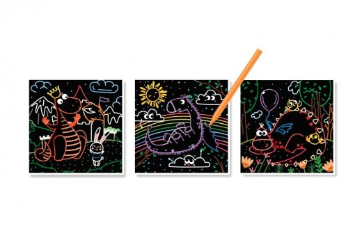 Гравюра Драконы – это весьма интересный и занимательный подарок для ребенка, который любит творчество и поделки своими руками. Это необычный способ создания картин-гравюр. На основу нанесено изображение. При помощи специального штихеля ребенок аккуратно снимает верхний слой. Таким образом, в результате кропотливой, но весьма увлекательной работы, ребенок получит оригинальный рисунок.